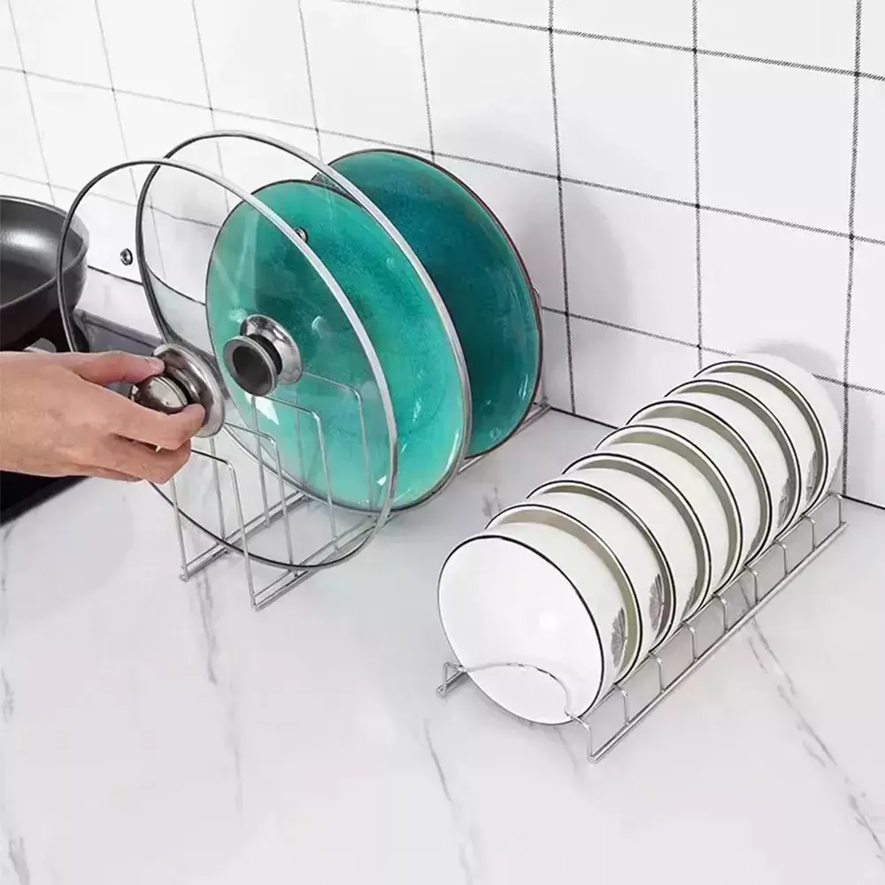 3.Keep your cabinets orderly by securing dishes, bakeware, pots, pans, and lids in the organizer.